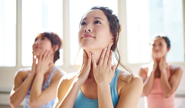 60分 リンパリラックスヨガ 顔・腕・脚・お腹のセルフマッサージの後にヨガのポーズをとり、全身のリンパの流れを促すコース。